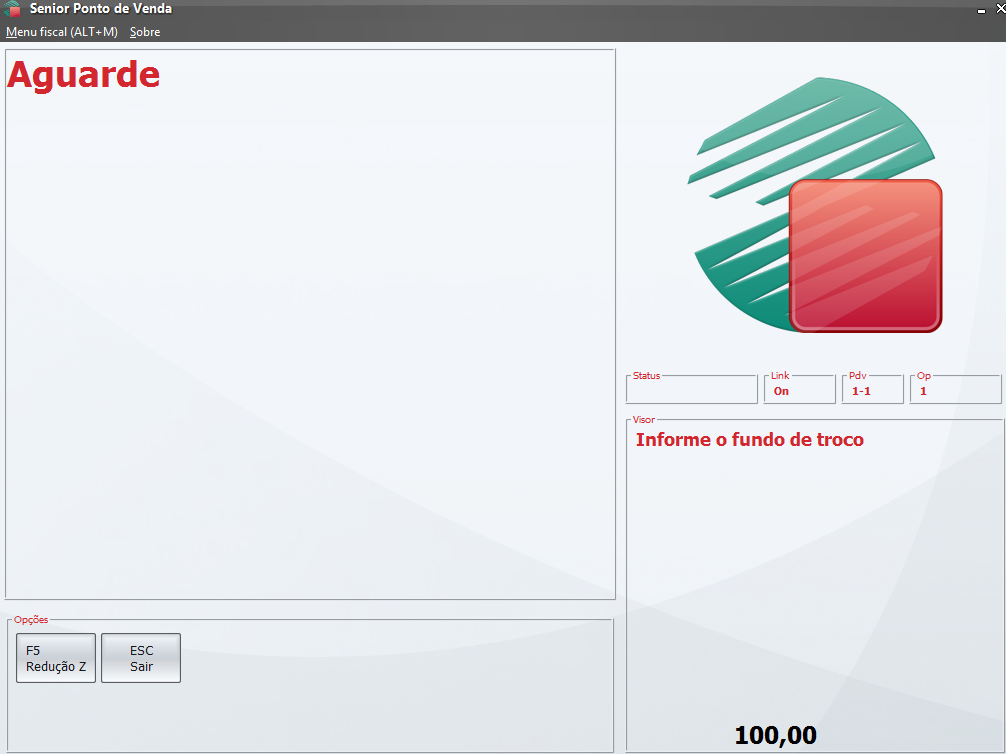 - Informe o valor correspondente para fundo de troco e tecle Enter. Caso a filial não possua fundo de troco, tecle Enter e o sistema vai considerar o valor de R$ 0,00.