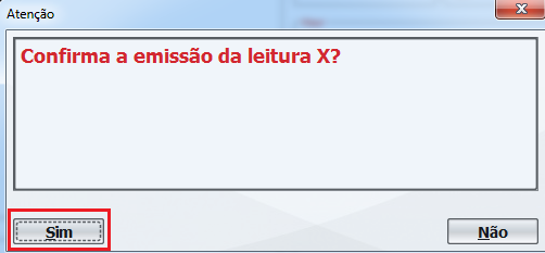 - Selecione a opção Leitura X. O sistema solicitará a confirmação da emissão do documento. Selecione a opção "Sim".