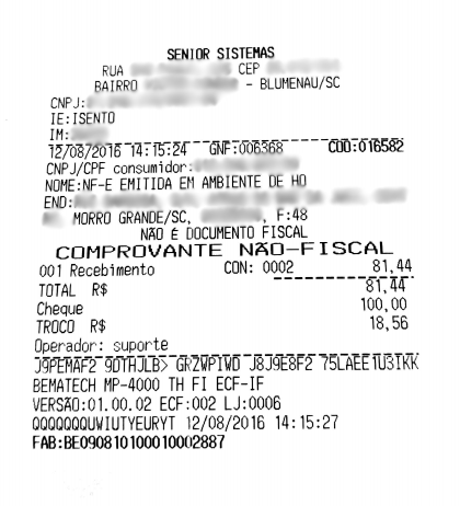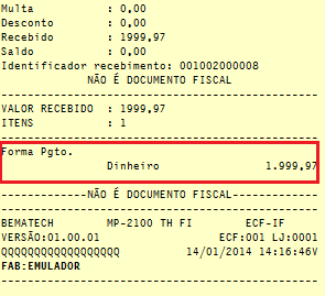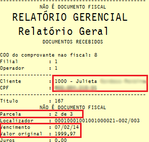 - O comprovante não fiscal de recebimento será impresso no ECF.
