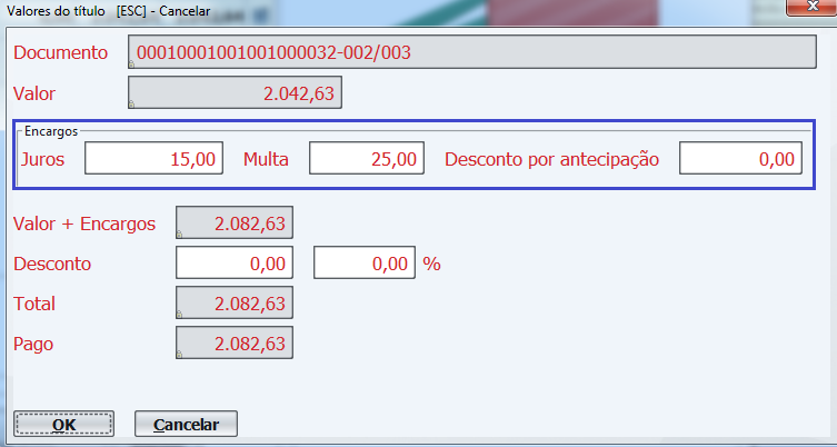 Efetua a edição do documento selecionado. A edição pode ser feita para aplicar juros, multa e desconto por antecipação.