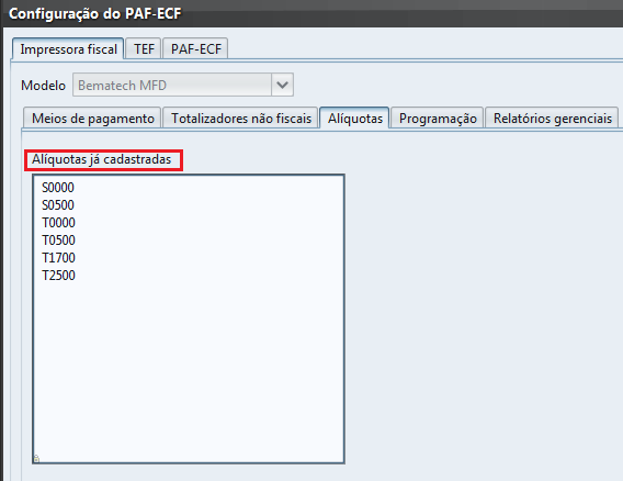 Efetue as configurações conforme requisitos do PAF-ECF e programação dos Meios de pagamento, Alíquotas, Totalizadores não fiscais e Relatórios Gerenciais quando necessário e vinculá-los ao ECF instalado.