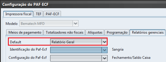 Para vincular, relacione os meios de pagamento do PDV com os meios de pagamento cadastrados na impressora fiscal e grave. Não é obrigatório relacionar os relatórios gerenciais, pode-se utilizar a opção Default.