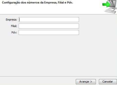 Clique em Avançar. Se o banco de dados não existir ou o PostgreSQL não estiver instalado, será apresentada a mensagem "Não foi encontrado o caminho do postgres, deseja instalar?". Ao clicar em Sim, a tela para configurar os números da empresa, filial e PDV será apresentada.