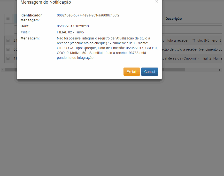 Notificações são mensagens enviadas da loja, sinalizando que existe alguma integração presa por estar dependente de outra integração.