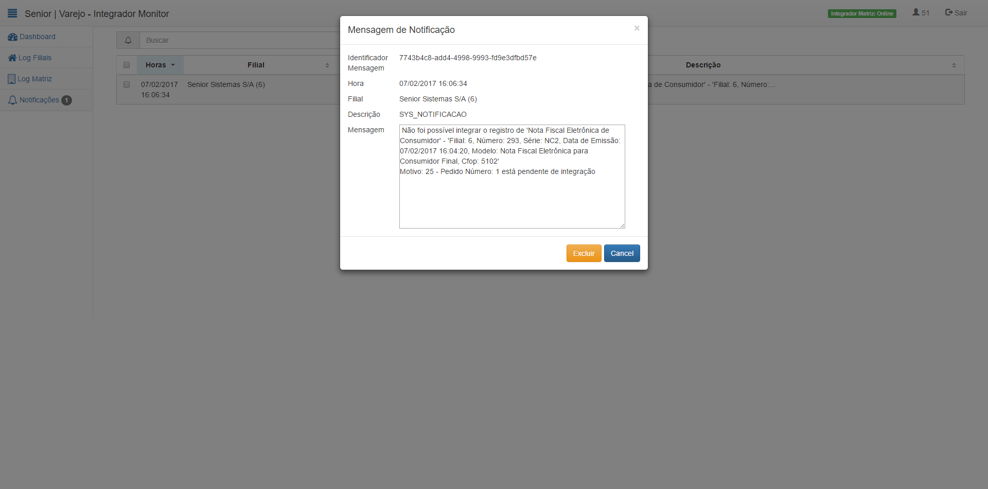 Gestão de Lojas - Manual do Usuário / Integrações / Integrador Monitor / Notificações