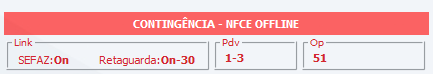 - Quando o PDV estiver configurado para modo de operação NFC-e, e está em contingência: