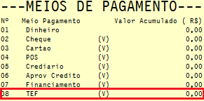 O meio de pagamento é inserido na programação do ECF e ficará destacado na leitura X: