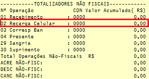 O totalizador não fiscal cadastrado é inserido na programação do ECF e ficará destacado na leitura X: