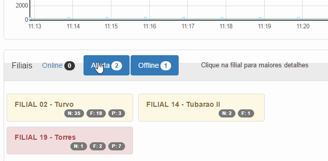 Conforme o status selecionado, são mostradas as filiais que se enquadram, sendo que basta passar o cursor sobre a desejada para ter um resumo: