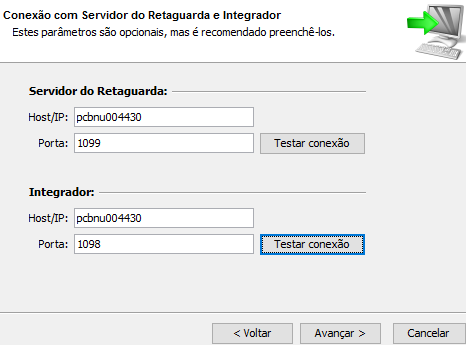 - Host/IP Retaguarda: nome da máquina ou IP de comunicação com o IntegradorRetaguarda. Por padrão, será preenchido com o nome da máquina que executa o instalador.