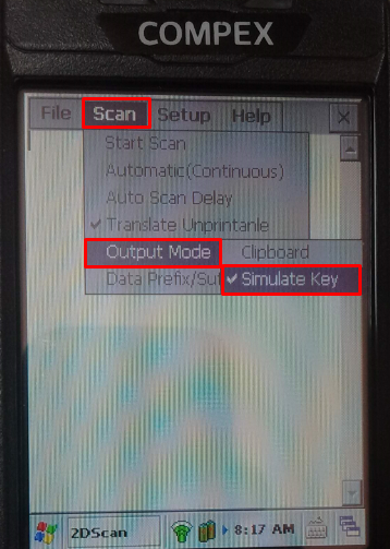 Na aplicação, deverá utilizar dos menus Scan > Output Mode > Simulate Key.