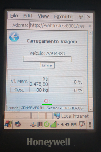 No módulo COD realizando um Carregamento de Transferência para o veículo com placa AAU4339