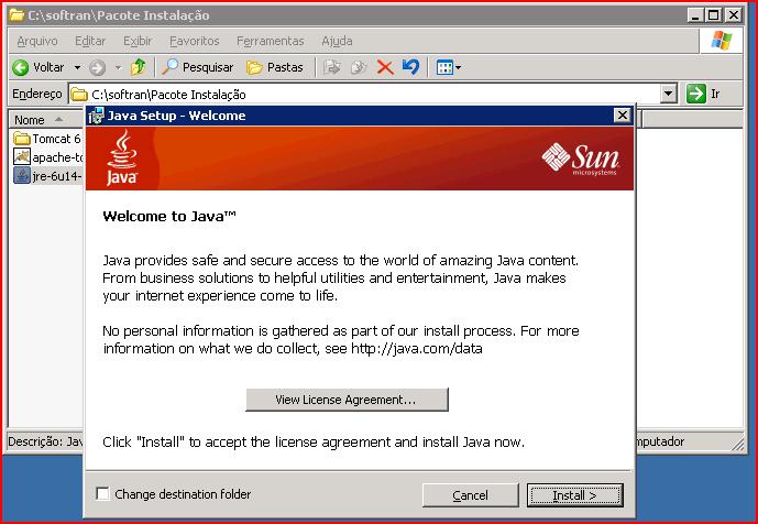 Alterar o “Destination Folder” para “C:\softran \tomcat 6.0” e clicar em Next.