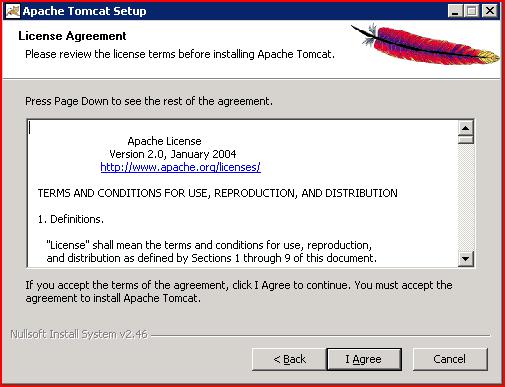 2.2 Clicar em “I Agree” aceitando os termos de utilização dos serviços do Apache Tomcat.