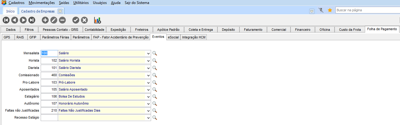 No módulo CFG em Cadastros >Empresas > Folha de Pagamento na guia Eventos deverá ser informado o evento para o comissionado: