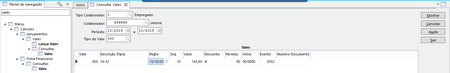 No Gestão de Pessoas | HCM na rotina de Vales será realizado um lançamento da integração do Senior Logística