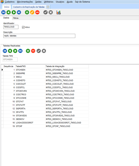 Cadastre as Tabelas GTCONHE, GTCCONIA e GTCMOVEN no Cadastro de Replicação de tabelas com o IDENTIFICADO TMSCLOUD caso não estejam incluidas: