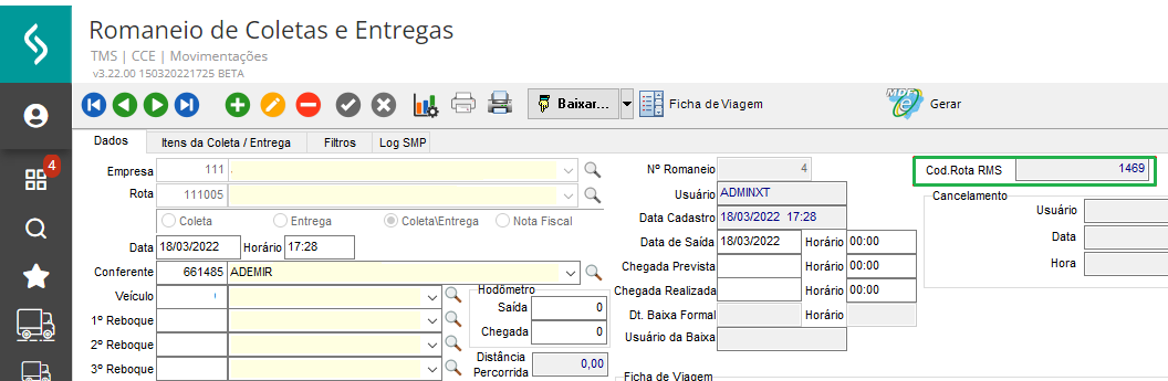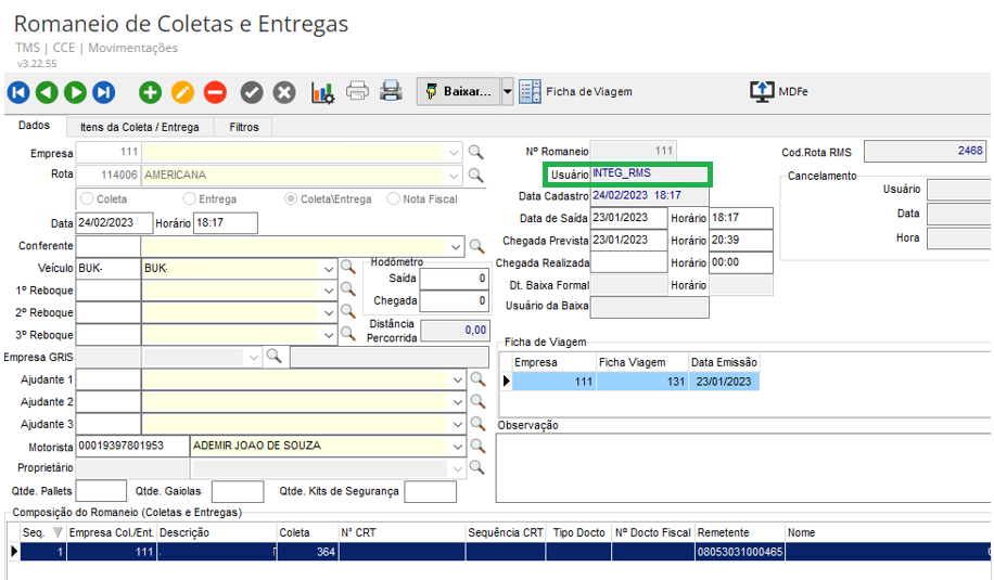 O sistema TMS permite incluir automaticamente o romaneio proveniente de uma rota do RMS em uma ficha de viagem, caso exista, tornando o processo mais fácil para os usuários. Isso é especialmente útil quando o motorista e terceiro recebe a ficha de viagem com base nos romaneios e no manifesto em que trabalhou.