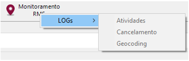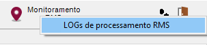 Ou então, se já concluído processo ao clicar com o botão direito do mouse no botão Monitoramento RMS, apresenta a opção para visualizar os logs.