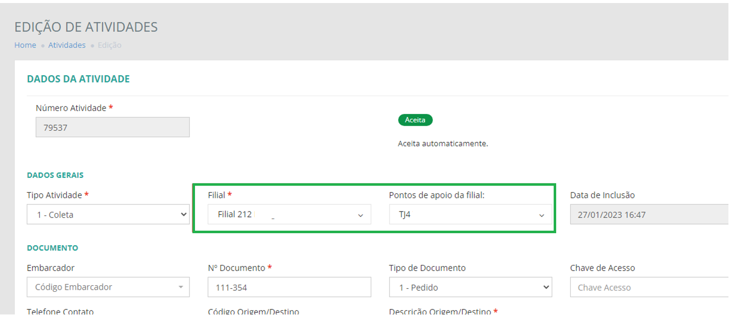 Quando a empresa origem do itinerário do Manifesto, for do tipo Ponto Atendimento e estiver cadastrada no RMS, ao enviar as atividades e consultar seus dados no RMS, o sistema apresenta os dados do ponto de apoio da filial cadastrada.