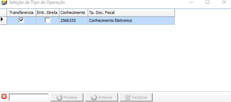 Como regra principal, o tipo de operação será sempre Transferência.