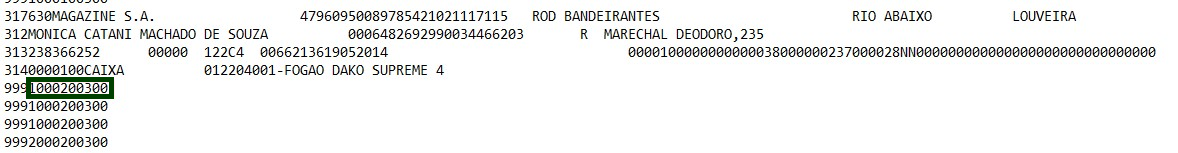 Por exemplo, um valor de R$100,20, pode ser representado da seguinte forma no arquivo de importação: 000000000010020.