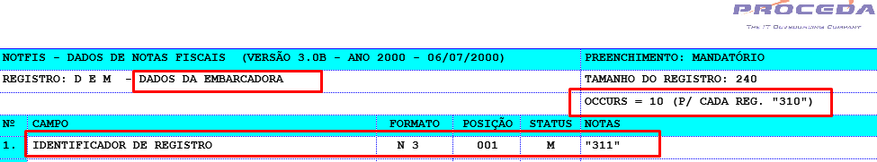 | Remetente (Embarcador) 311 | 311 |