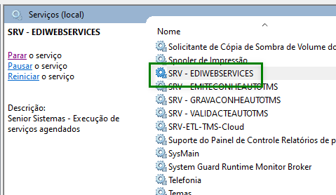 Inicie o serviço do EDIWEBSERVICES:
