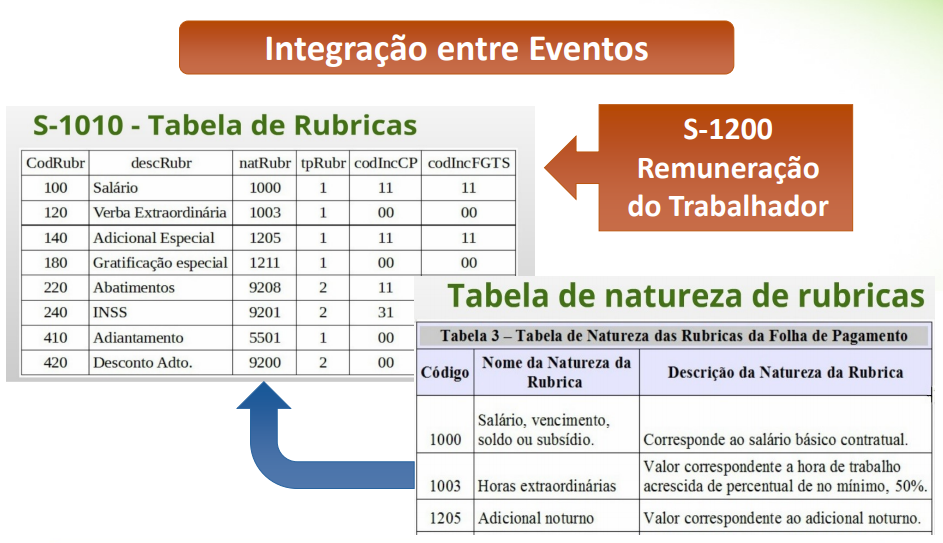 - Vinculação entre tabela de rubricas da empresa com a tabela de natureza de rubricas.