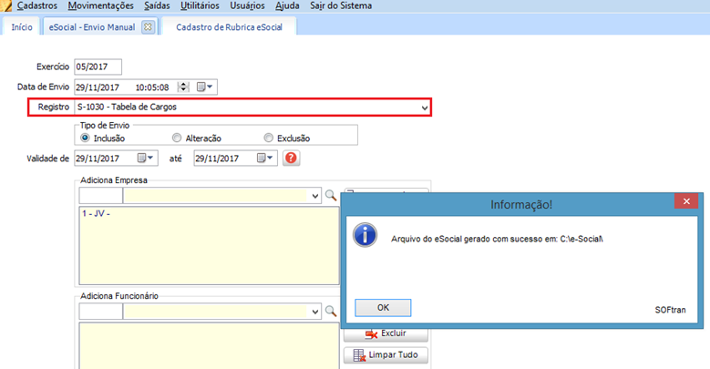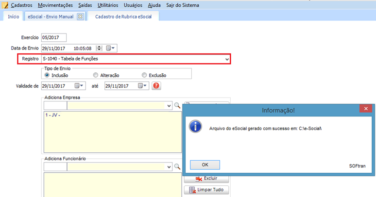 - Adiciona Funcionário, utilizado como filtro para arquivos que possuem funcionários;