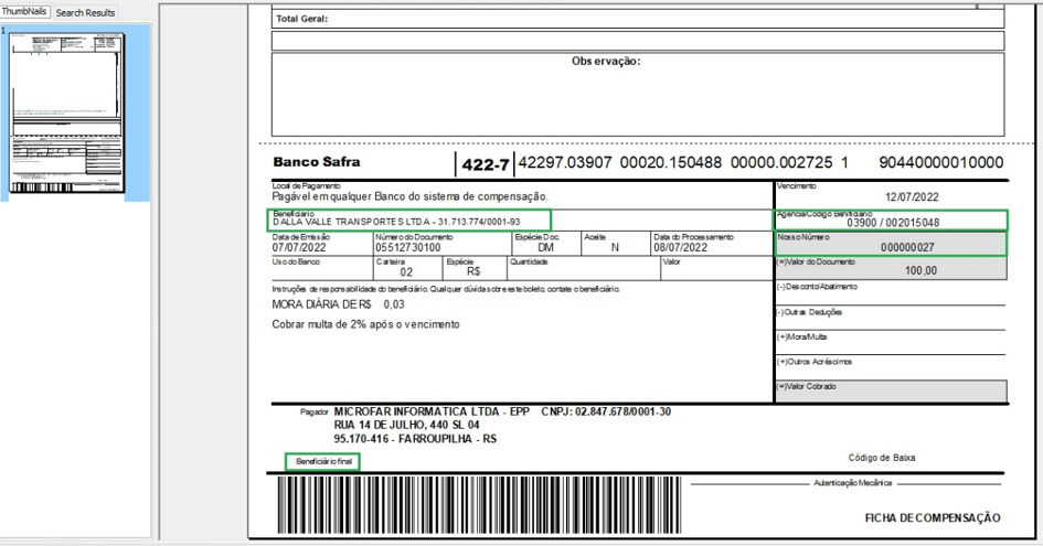 - Campo Beneficiário: terá o CNPJ de acordo com a empresa emitente do boleto