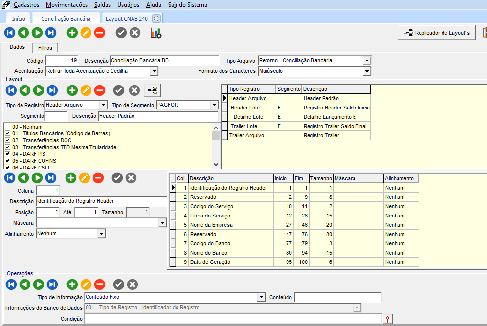 - IBC > Cadastros > Cobrança Escritural > Layout – CNAB240:
