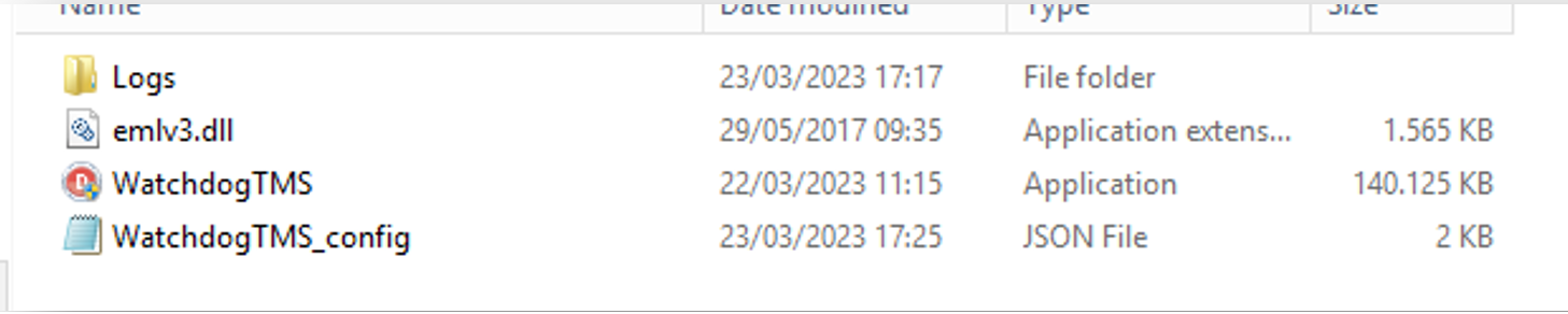 Para o funcionamento do serviço WatchdogTMS é necessário ter os seguintes arquivos em uma pasta selecionada: