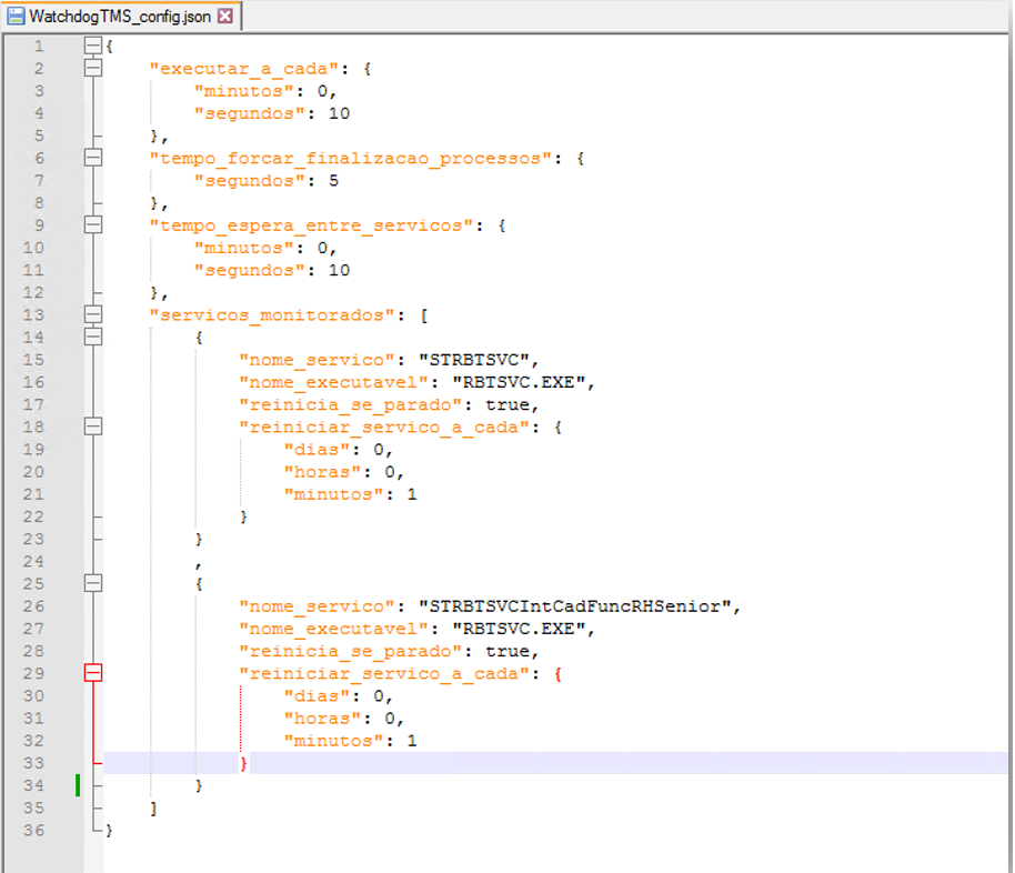 - SERVICOS_MONITORADOS: Array para informar os objetos com os dados dos serviços que serão monitorados pelo WatchdogTMS.