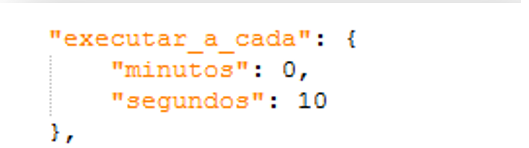 O objeto executar_a_cada representa a configuração do tempo do ciclo principal do serviço, ou seja, o tempo em que o WatchdogTMS irá percorrer toda a lista de serviços que devem ser analisados. Na imagem de exemplo ele está configurado para executar a cada 10 segundos.