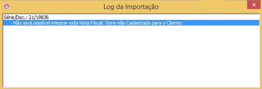 No grid inferior são apresentados os itens da nota, estes itens devem estar todos cadastrados, caso não estejam clique no item e realize o cadastro, se não realizados esses cadastros a rotina exibirá mensagem com log: