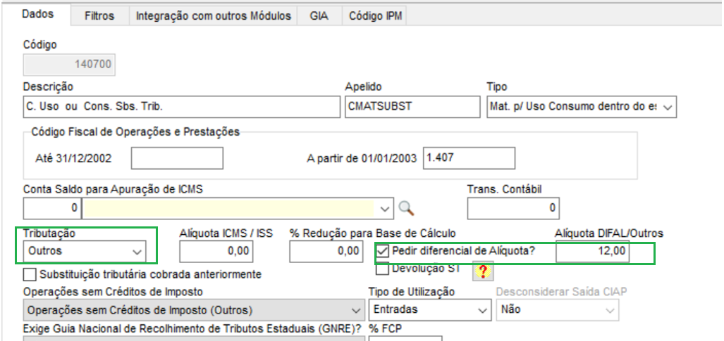 Para Cálculo DIFAL para Tributação Outros, é necessário utilizar módulo SUP ou RDE em versão 3.21.19 ou superior.