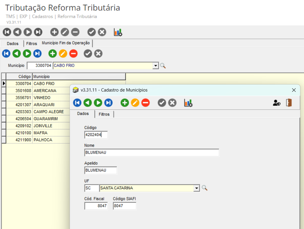 Para que o imposto do IBS Municipal seja calculado corretamente conforme o município fim de prestação informado no IBS Municipal do cadastro da Tributação Reforma Tributária, será necessário realizar um ajuste no cadastro de Localidade do Destinatário.