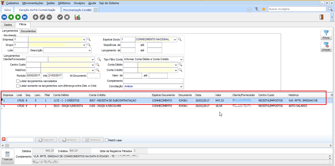 No módulo CTB em Movimentações > Contabilidade > Movimentação Contábil, deve ser verificado a movimentação lançada para o conhecimento.