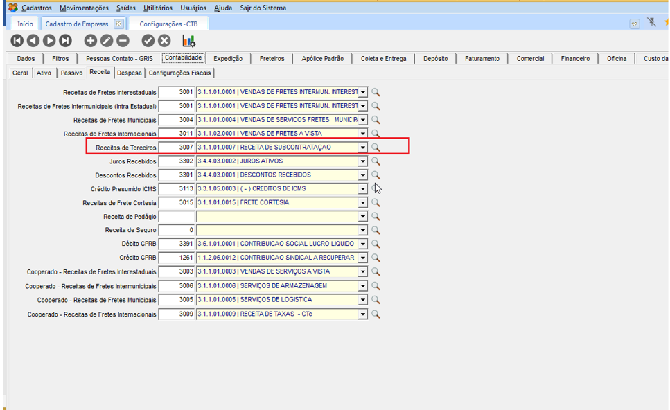 Como o freteiro é cooperado e municipal, será realizado o lançamento na conta “Receitas de Terceiros”.