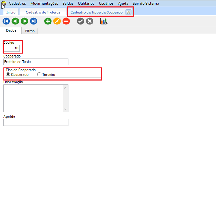 Lembrando que: O tipo de Cadastro deve estar marcado como “Cooperado”, para cadastrar é em EXP > Cadastros > Motoristas >Tipos de Cooperado