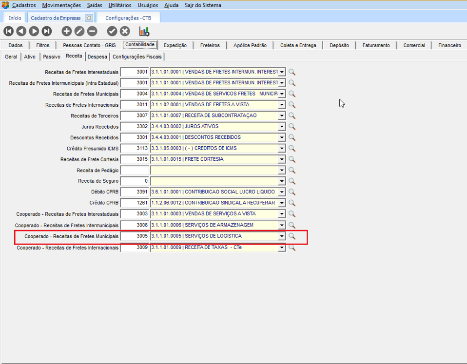 Como o freteiro é cooperado e municipal, será realizado o lançamento na conta Cooperado - Receitas de Fretes Municipais.