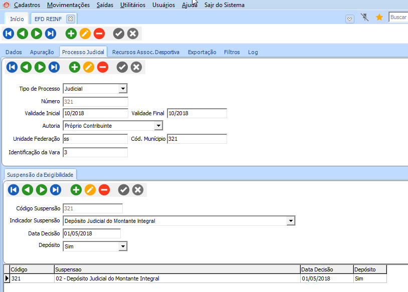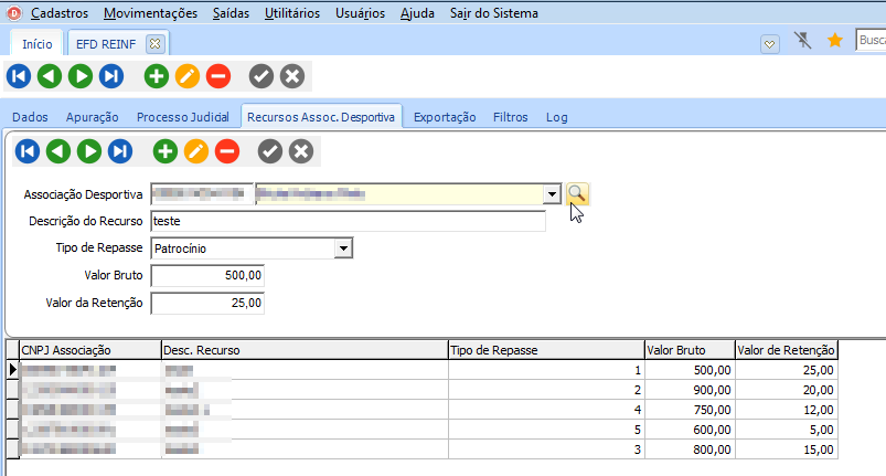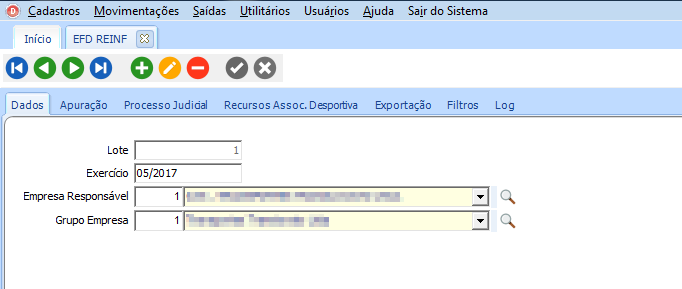 A rotina possibilita cadastrar um exercício selecionando a empresa ou o grupo de empresas. Posteriormente é possível trazer para dentro do cadastro a apuração dos impostos, cadastrar processos judiciais e cadastrar repasses de verbas a associações desportivas.