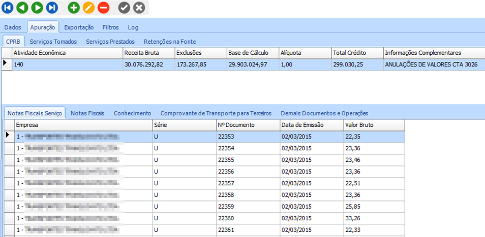 - CPRB: para a guia CPRB será buscado e detalhado por documento o valor já calculado na guia Apuração/INSS Sobre Faturamento da rotina CTB > Movimentações > Escrituração Fiscal > Apuração de PIS/COFINS.
