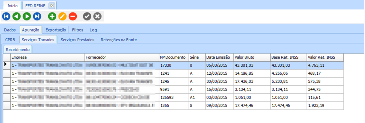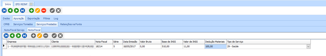 Irá detalhar as notas fiscais recebidas com retenção de INSS: