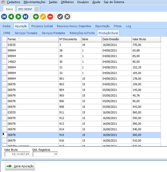 Clique em Gerar Apuração para gerar o XML referente ao registro R4010.