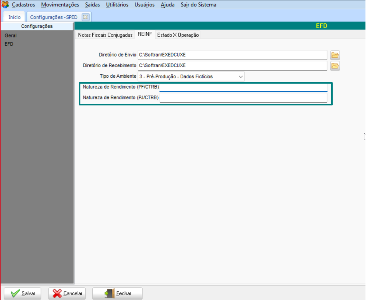 - No módulo GFG em Utilitários > Configurações - SPED, informe qual a natureza de rendimento: