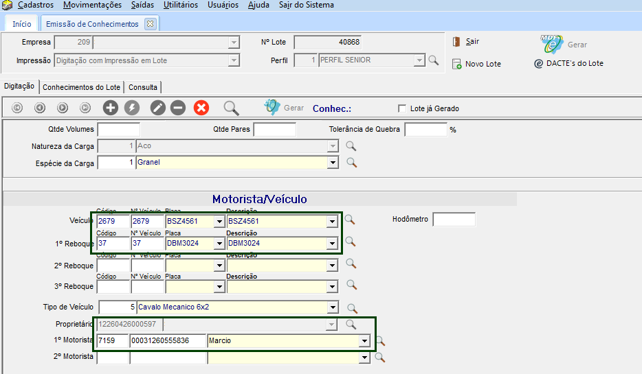 No modulo EXP em Movimentações >Conhecimentos >Emissão, ao informar o número da coleta e sair do campo, se a opção estiver marcada ele busca o reboque e os dados do motorista e placas informadas.