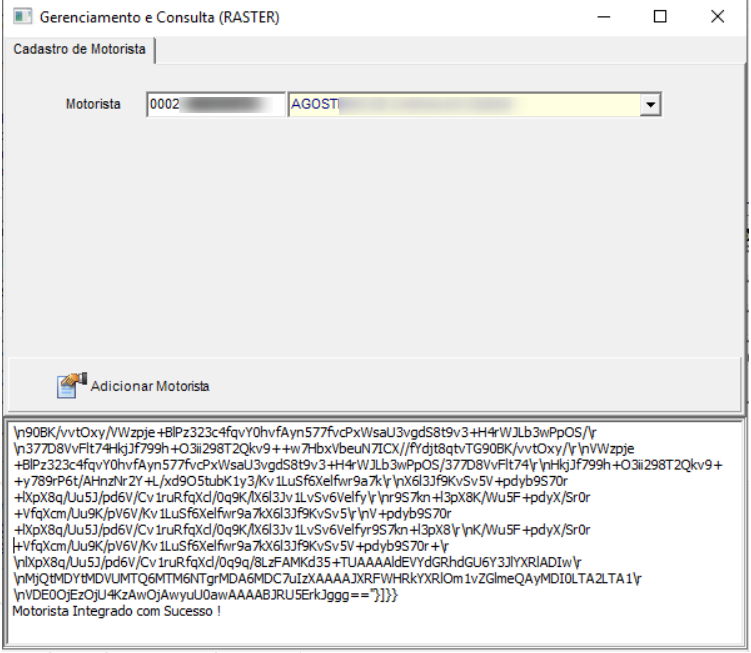 Na tela de Gerenciamento e Consulta (Raster), basta clicar no botão Adicionar Motorista.