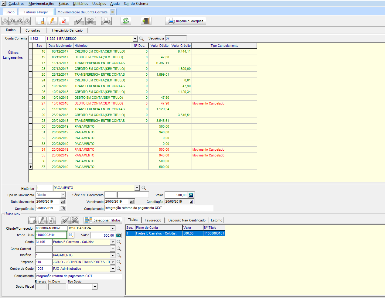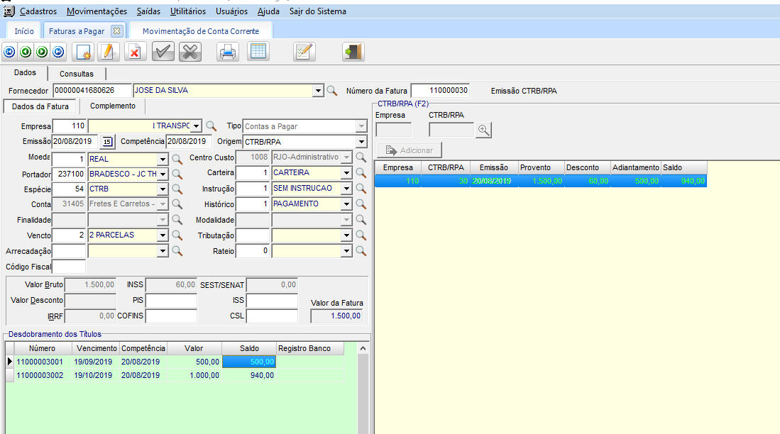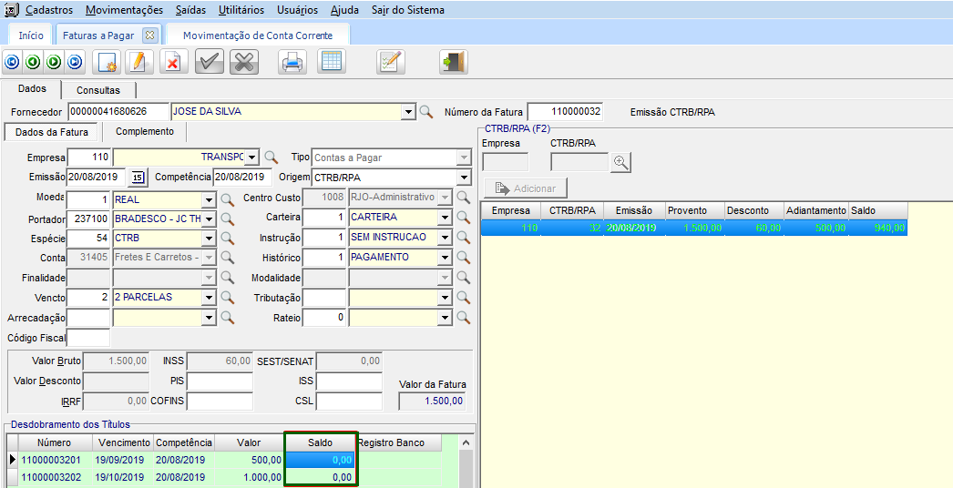 Baixa automática do saldo do Título do CTRB/RPA